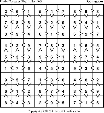 Daily “Greater Than” Sudoku for 11/2/2007