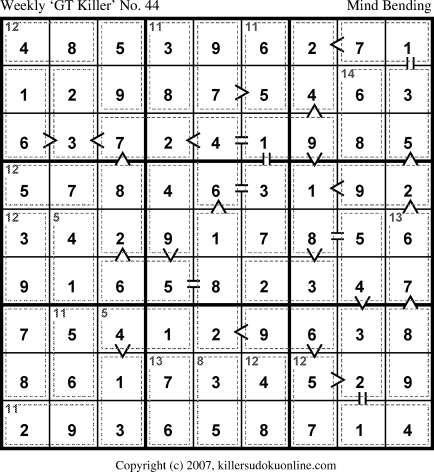 Weekly “Greater Than” Killer sudoku for week starting 2/12/2007