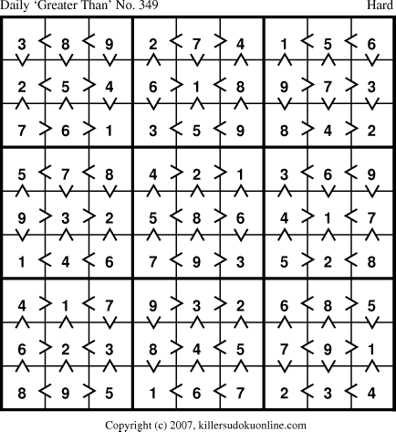 Weekly “Greater Than” Killer sudoku for week starting 4/2/2007