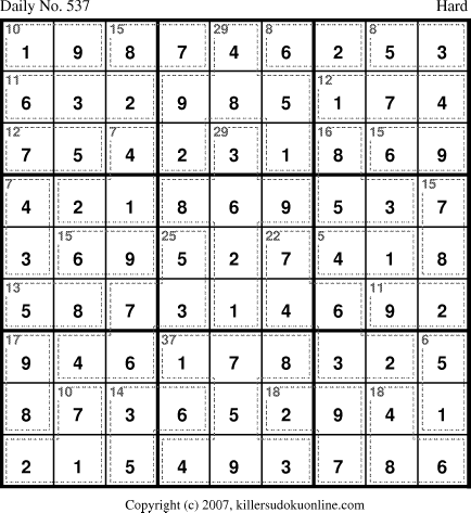 Weekly Killer Sudoku for week starting 6/11/2007