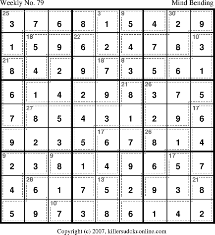 Weekly “Greater Than” Killer sudoku for week starting 7/9/2007