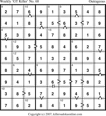 Weekly “Greater Than” Killer sudoku for week starting 7/30/2007