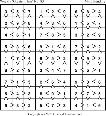 Weekly “Greater Than” Sudoku for week starting 8/20/2007