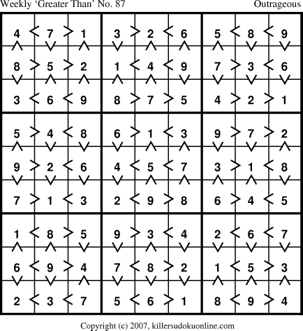 Weekly “Greater Than” Sudoku for week starting 9/17/2007