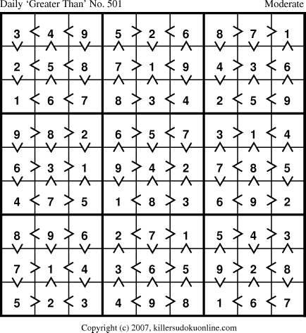 Weekly “Greater Than” Sudoku for week starting 9/3/2007