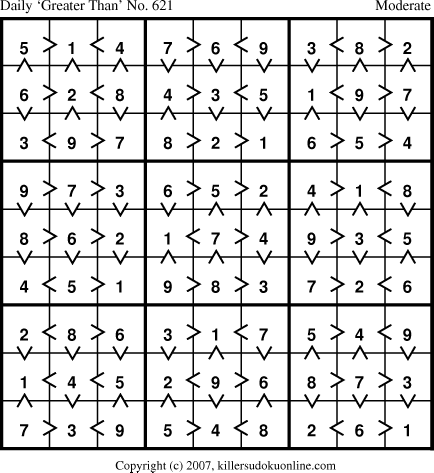 Weekly “Greater Than” Sudoku for week starting 12/31/2007