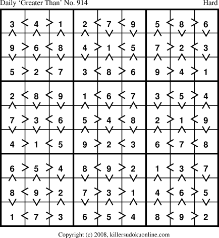 Daily “Greater Than” Sudoku for 10/20/2008