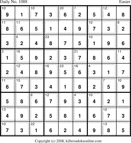Weekly “Greater Than” Killer sudoku for week starting 12/15/2008