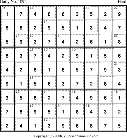 Weekly “Greater Than” Killer sudoku for week starting 12/15/2008