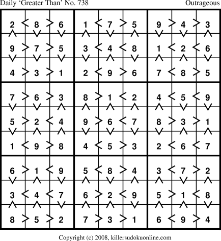 Weekly “Greater Than” Killer sudoku for week starting 4/21/2008