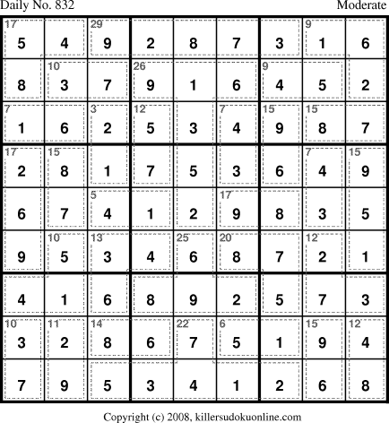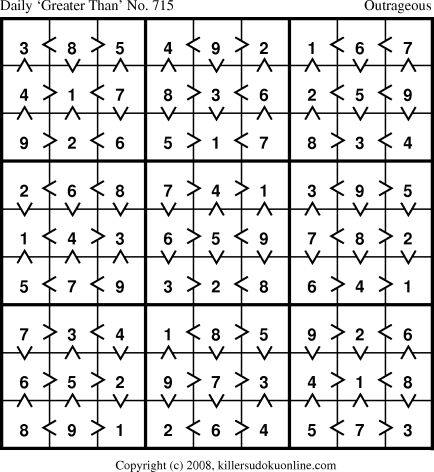 Weekly “Greater Than” Killer sudoku for week starting 3/31/2008