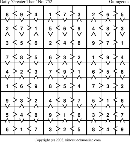 Daily “Greater Than” Sudoku for 5/11/2008