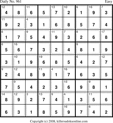 Weekly “Greater Than” Killer sudoku for week starting 8/11/2008