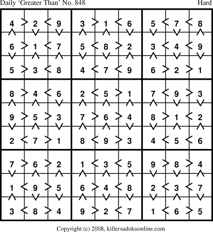Weekly “Greater Than” Killer sudoku for week starting 8/11/2008