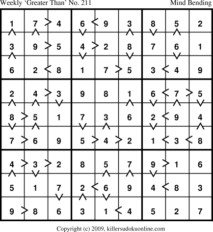 Weekly “Greater Than” Sudoku for week starting 2/1/2010