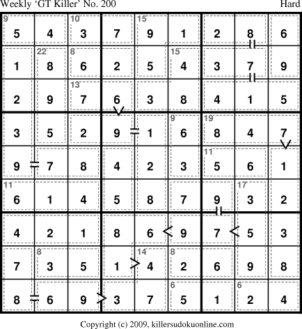 Weekly “Greater Than” Killer sudoku for week starting 2/8/2010