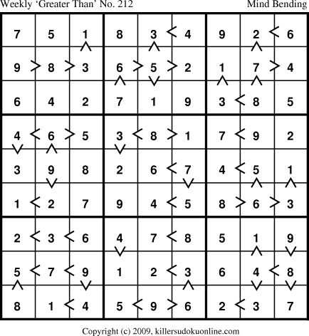 Weekly “Greater Than” Sudoku for week starting 2/8/2010