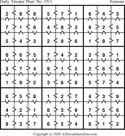 Weekly “Greater Than” Sudoku for week starting 5/31/2010