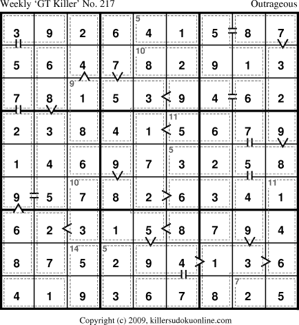 Weekly “Greater Than” Killer sudoku for week starting 6/7/2010