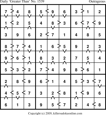 Daily “Greater Than” Sudoku for 7/1/2010