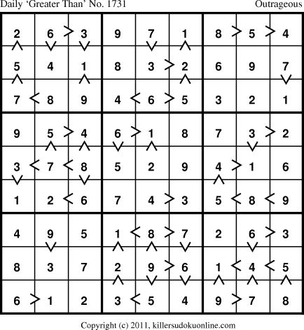Daily “Greater Than” Sudoku for 1/9/2011