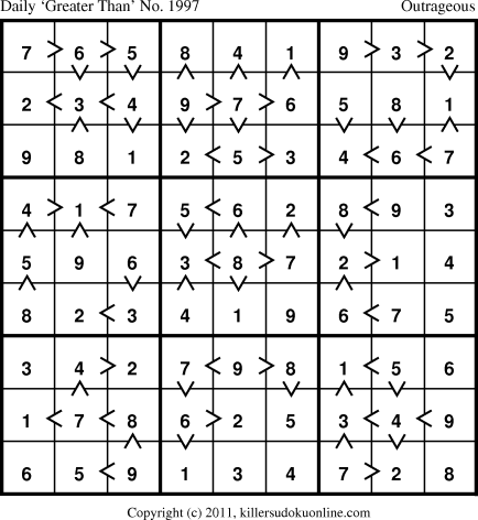 Weekly “Greater Than” Sudoku for week starting 9/26/2011