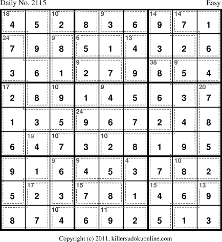 Weekly “Greater Than” Killer sudoku for week starting 10/3/2011