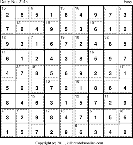 Weekly Killer Sudoku for week starting 10/31/2011