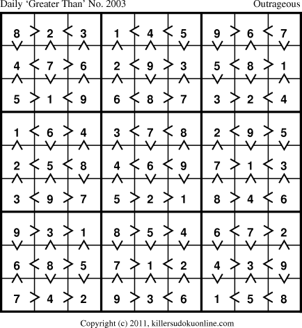 Weekly “Greater Than” Sudoku for week starting 10/3/2011