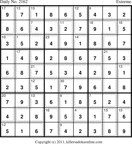 Weekly “Greater Than” Killer sudoku for week starting 11/14/2011