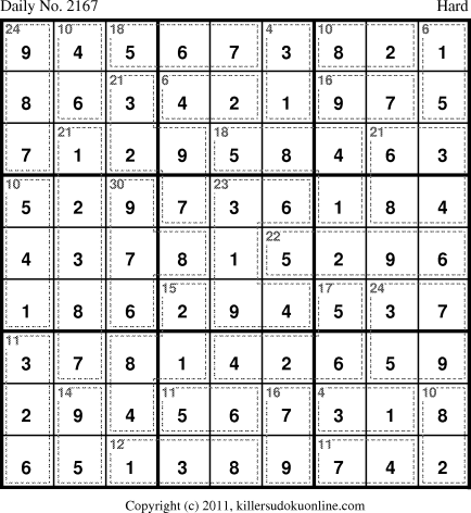 Weekly “Greater Than” Killer sudoku for week starting 11/21/2011