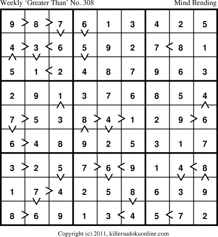 Weekly “Greater Than” Sudoku for week starting 12/12/2011