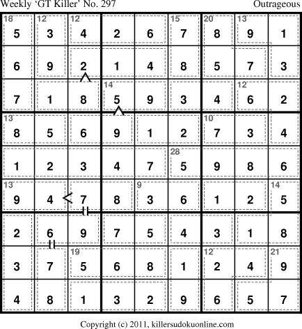 Weekly “Greater Than” Killer sudoku for week starting 12/19/2011