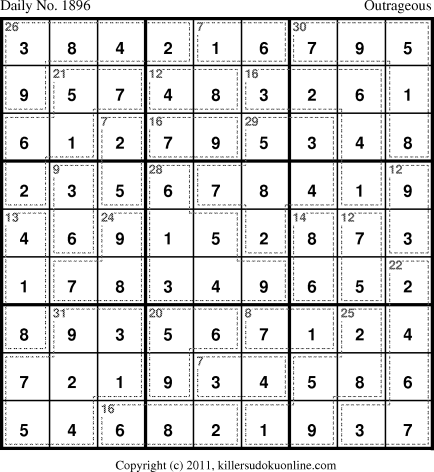 Weekly “Greater Than” Killer sudoku for week starting 2/21/2011