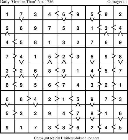 Daily “Greater Than” Sudoku for 2/3/2011
