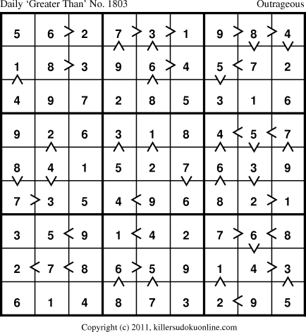Weekly “Greater Than” Killer sudoku for week starting 3/21/2011