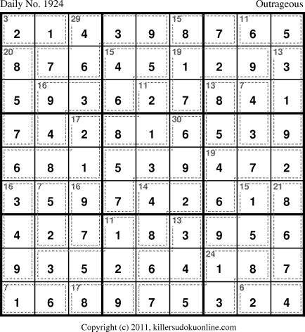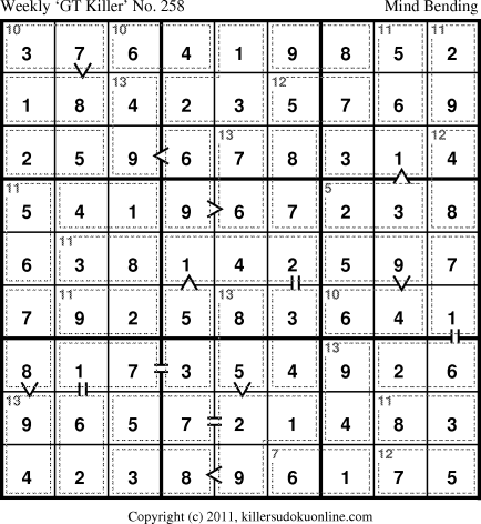 Weekly “Greater Than” Killer sudoku for week starting 3/21/2011