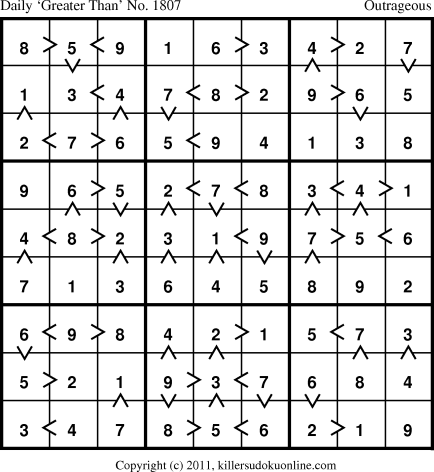 Weekly “Greater Than” Sudoku for week starting 3/21/2011