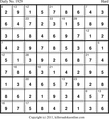 Weekly “Greater Than” Killer sudoku for week starting 3/28/2011