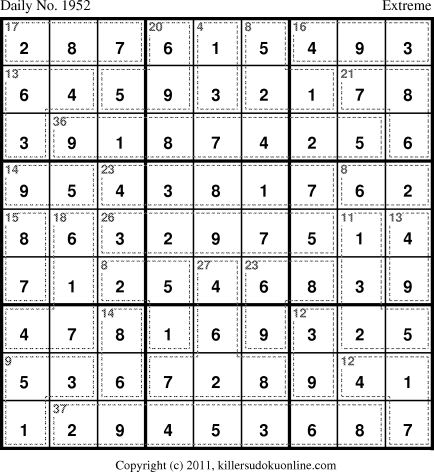 Weekly “Greater Than” Killer sudoku for week starting 4/18/2011