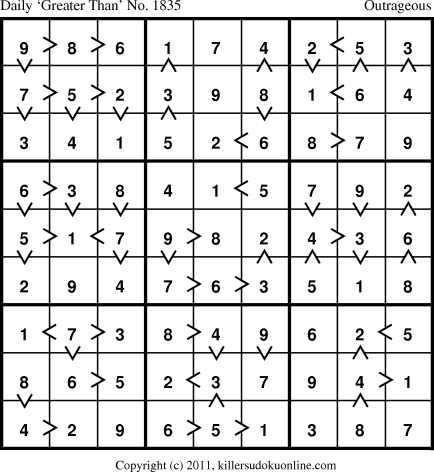 Weekly “Greater Than” Sudoku for week starting 4/18/2011