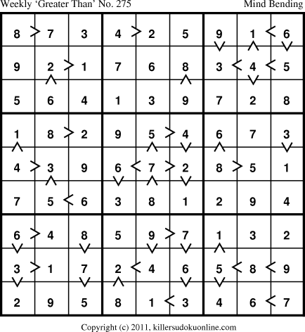 Weekly “Greater Than” Sudoku for week starting 4/25/2011