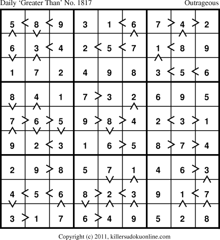 Weekly “Greater Than” Killer sudoku for week starting 4/4/2011