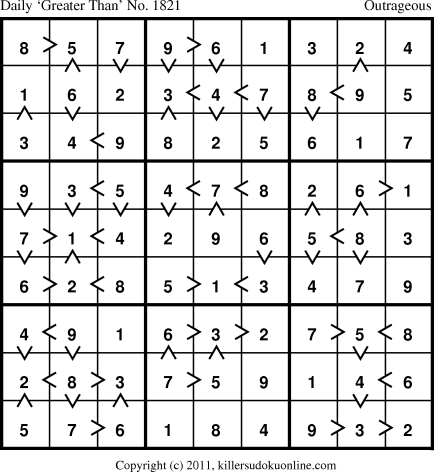 Weekly “Greater Than” Sudoku for week starting 4/4/2011