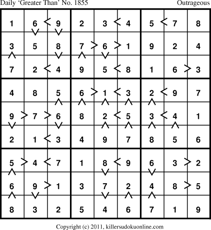 Weekly “Greater Than” Killer sudoku for week starting 5/9/2011