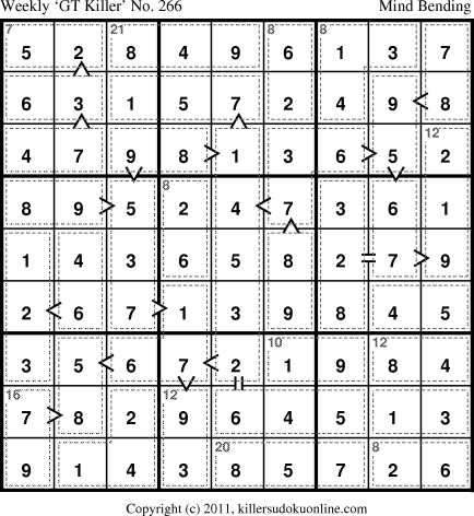 Weekly “Greater Than” Killer sudoku for week starting 5/16/2011
