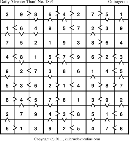 Daily “Greater Than” Sudoku for 6/18/2011