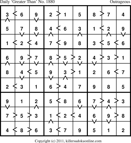 Weekly “Greater Than” Killer sudoku for week starting 6/6/2011