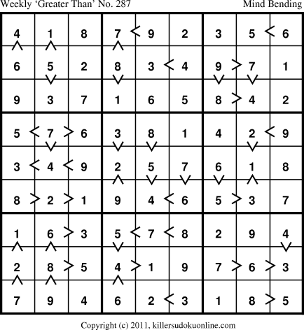 Weekly “Greater Than” Killer sudoku for week starting 7/18/2011