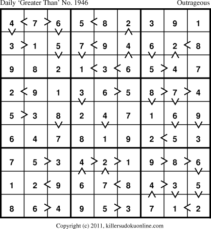 Weekly “Greater Than” Sudoku for week starting 8/8/2011